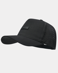 The Eagle Black Golf Hat easily combines style with function with a laser perforated, side-ventilation comfort polyester and spandex body, moisture wicking polyester sweatband and adjustable closing. The Eagle has a sleek fold in the front top of the hat, making it perfect for a casual event. The Eagle is breathable and stretchy and will keep you comfortable whether out on the golf course or working out at the gym.